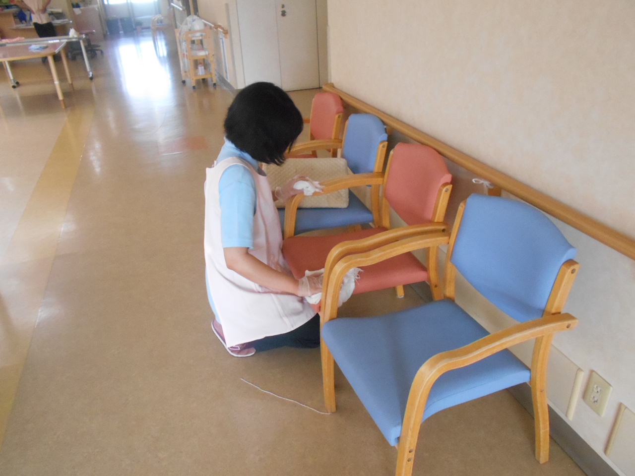 移行支援利用の20代女性のKさん、5月の連休明けから早良区の特別養護老人ホームにて実習を開始しました。